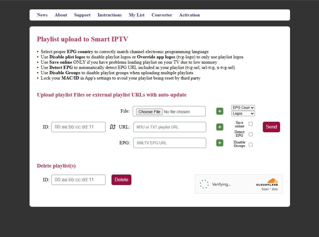 Sobald Sie die MAC-Adresse haben, müssen Sie die M3U-Liste Ihres Anbieters hochladen. Gehen Sie wie folgt vor: