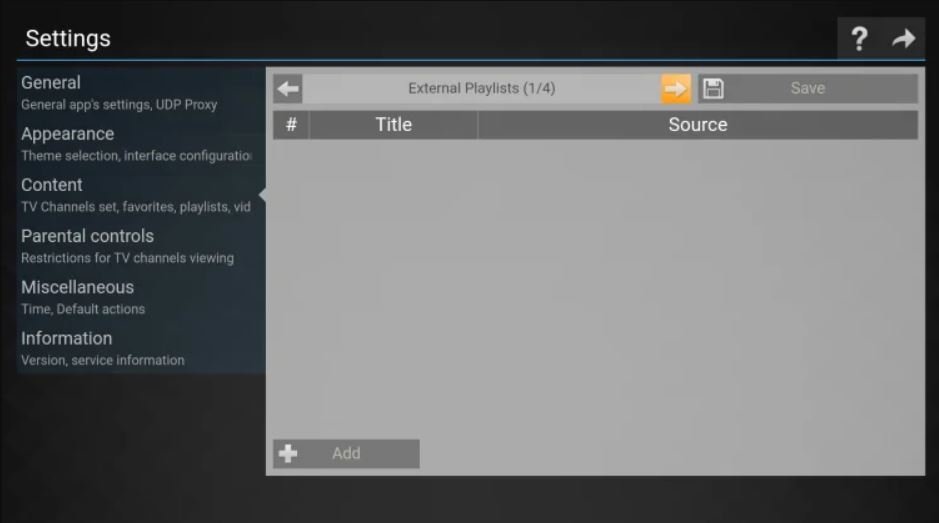 4.Inhaltsverbindung (M3U-Methode): Innerhalb der Einstellungen finden Sie Optionen für „Inhalt“, „Playlists“ oder „Allgemein“. Hier gibt es zwei Wege: