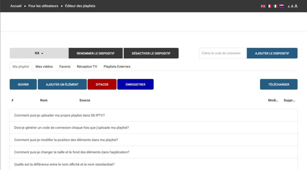 ss-iptv.com/en/users/playlist.Verbinden: Geben Sie den Code von Ihrem Fernseher auf der Website ein und klicken Sie auf “Add Device”.